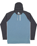 4.5 oz., 60% combed ringspun cotton/40% polyester fine jersey ; fit: adult unisex - true to size; contrast three-piece hood construction; contrast cotton-hand flat braided drawcord; contrast raglan long-sleeve; Easytearâ„¢ label; sideseam construction; double-needle hemmed sleeves and bottom; drop tail with side vent construction;